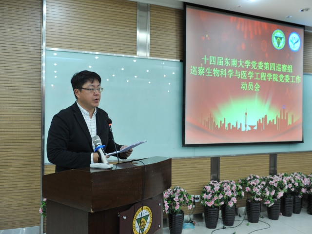 第四巡察组组长邢纪红首先做动员讲话并提出了贯彻巡查方针的三个重要阶段:一是要加强沟通和动员部署,开展前期的问卷调查;二是开展个别谈话,信访以及查阅相关资料,欢迎师生积极反映学院情况;三是起草巡查情况报告。邢纪红同志表示完成巡查任务并自觉接受巡查监督是生医学院全院师生共同的政治责任,要确保不受任何干扰。